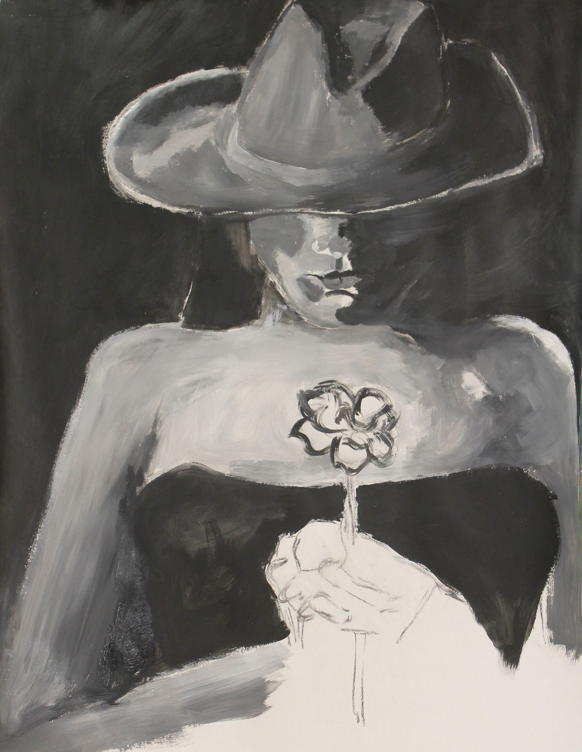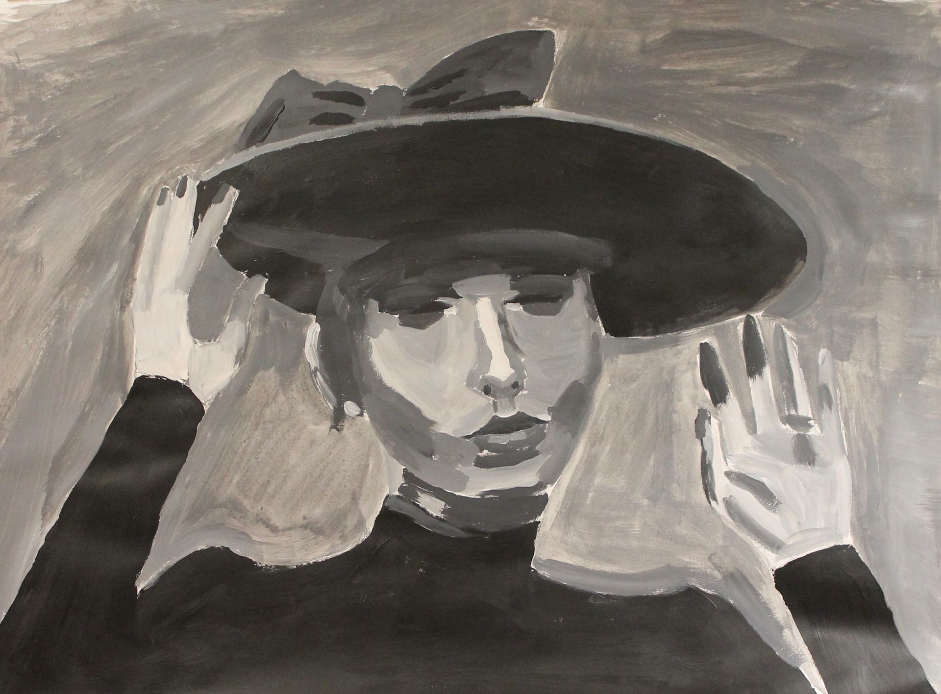 Foto van een portret naschilderen, met acrylverf zwart/wit