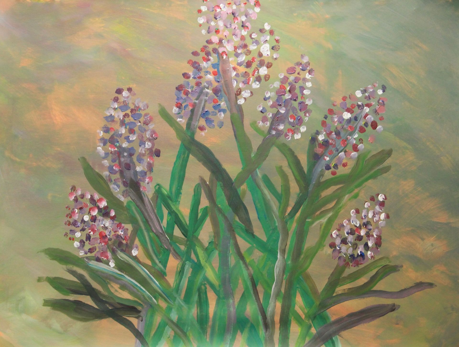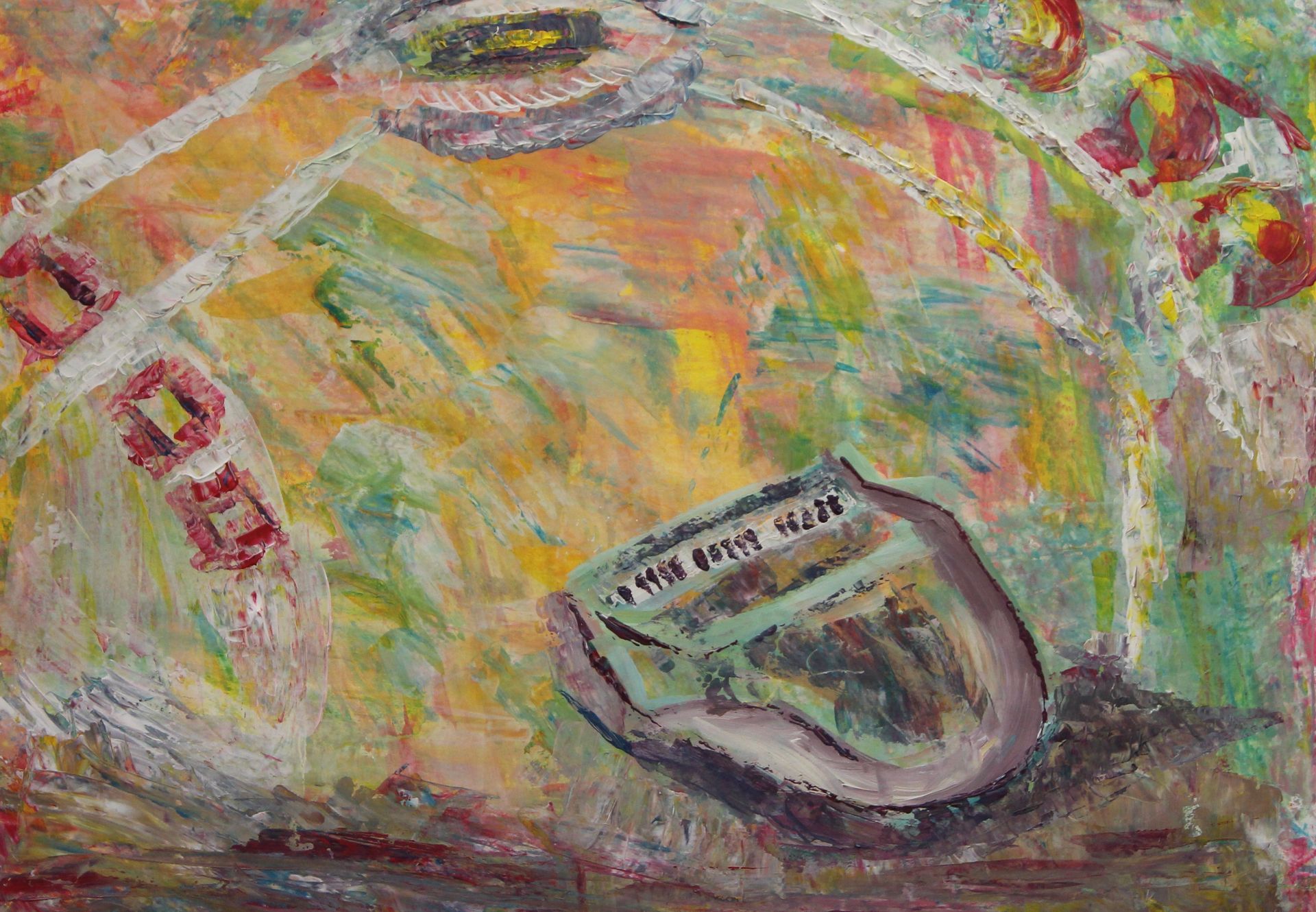 We hebben een nieuw clubje bij elkaar van gevorderde schilders en om even een beetje los te komen, of er weer in te komen, beginnen we met het schilderen van een achtergrond. Op de achtergrond schilderen de cursisten een voorwerp dat bij deze dag hoort.