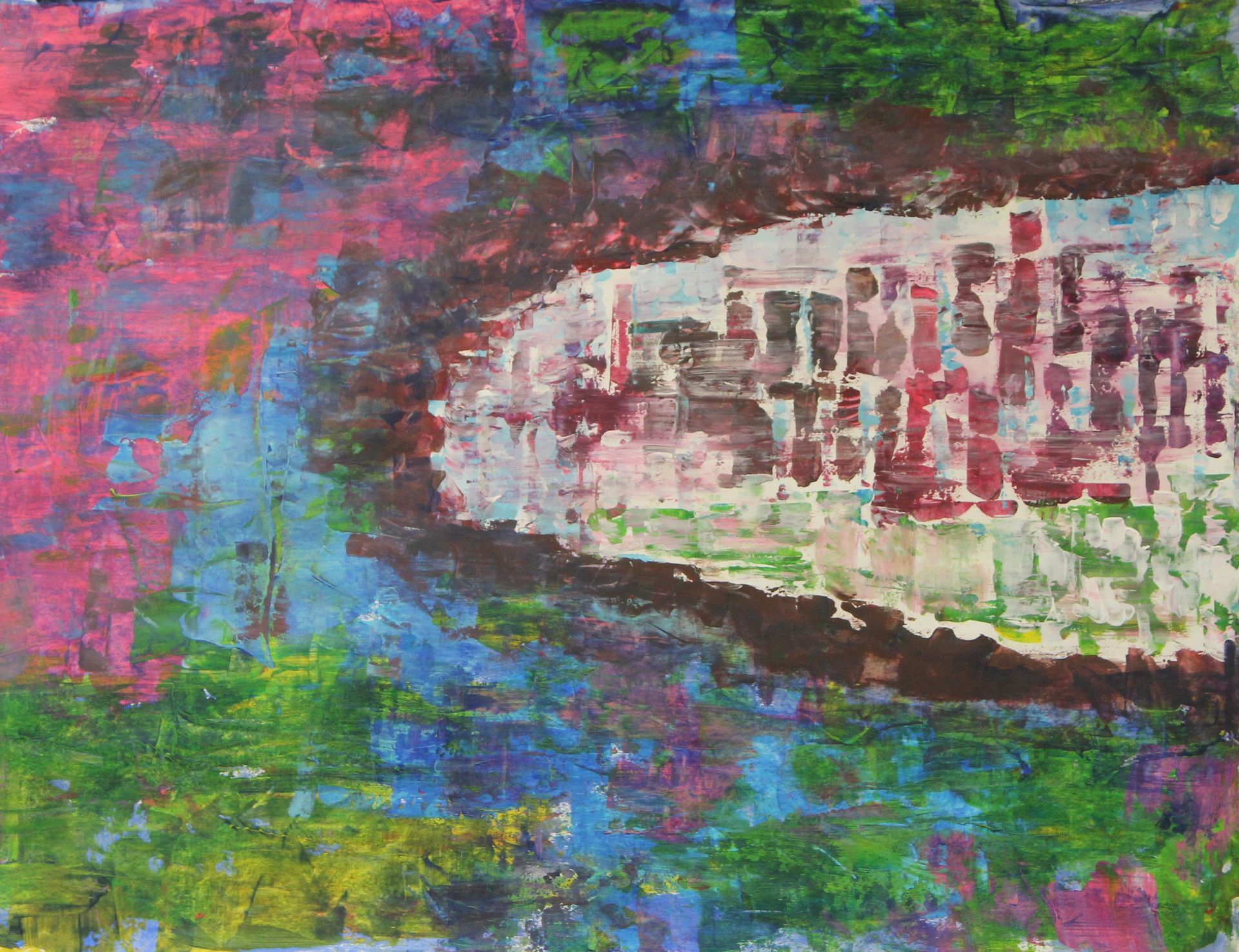 Ze hebben allemaal een foto meegenomen. De foto heeft een vaste compositie, maar wat gebeurt er als ze van die foto een eigen compositie maken? Het levert enige stress op als we gaan beginnen, maar gaandeweg komt iedereen in het schilderij en ontstaan er nieuwe, kleurrijke beelden.
