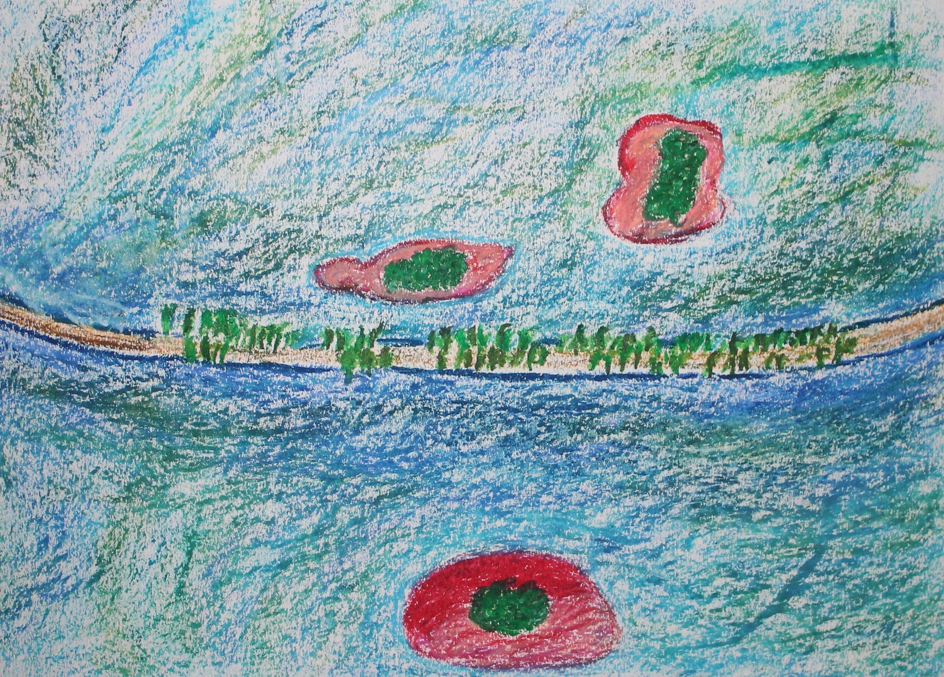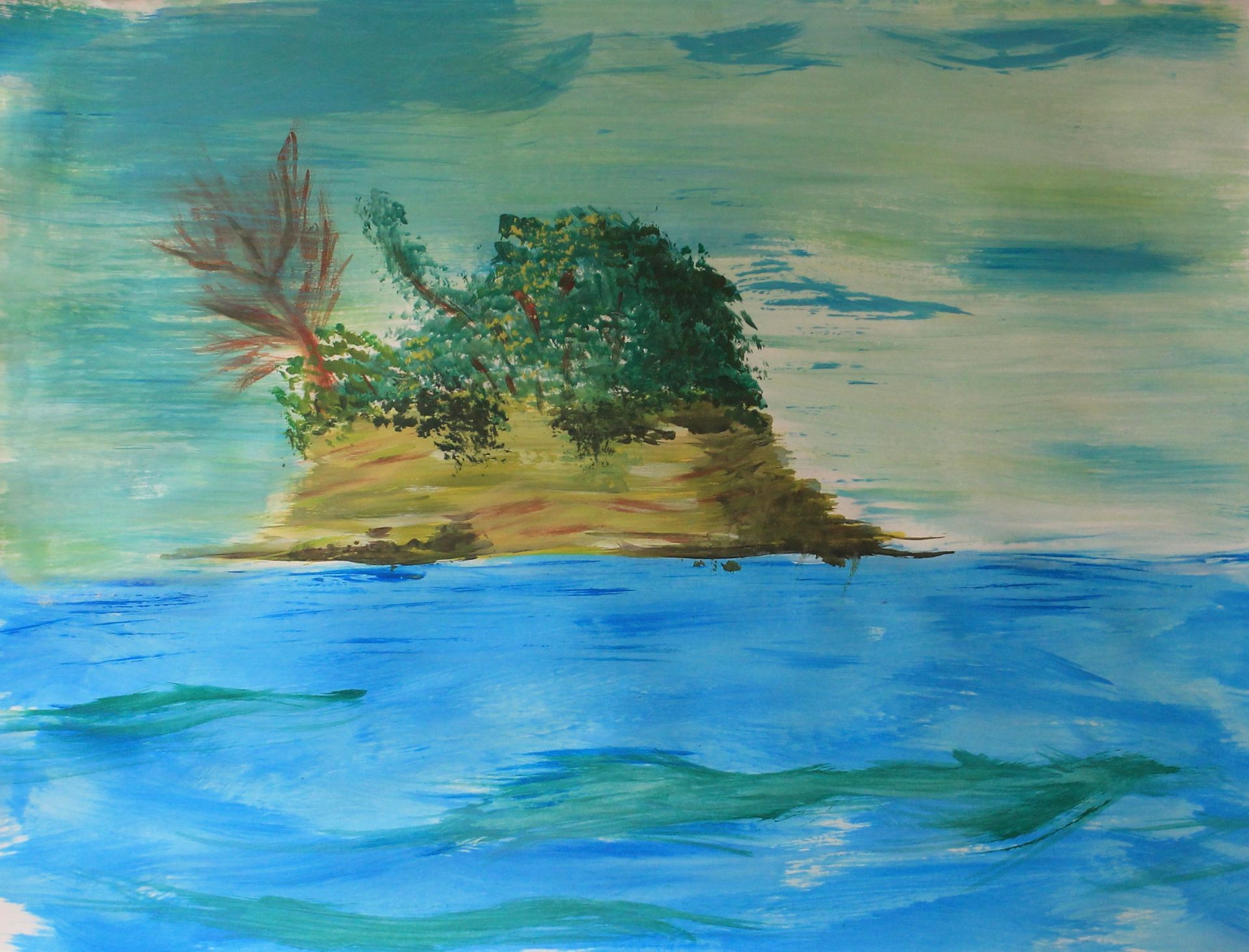 Vanavond schilderen de deelnemers met natuurlijke kleuren een eiland. Ze oefenen met het mengen van verschillende tinten, natuurlijke kleuren in de ondergrond èn in het water en de lucht. Eerst wordt de compositie gemaakt, de contouren van het eiland vastgelegd, waarna de vegetatie en de rotsen van het eiland worden geschilderd.