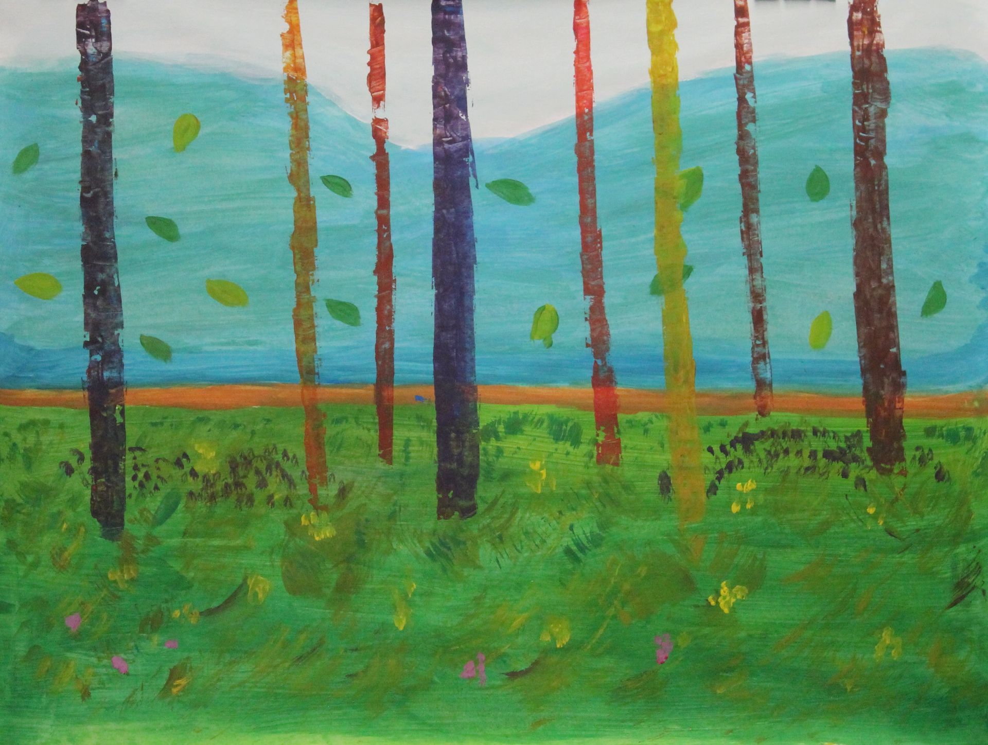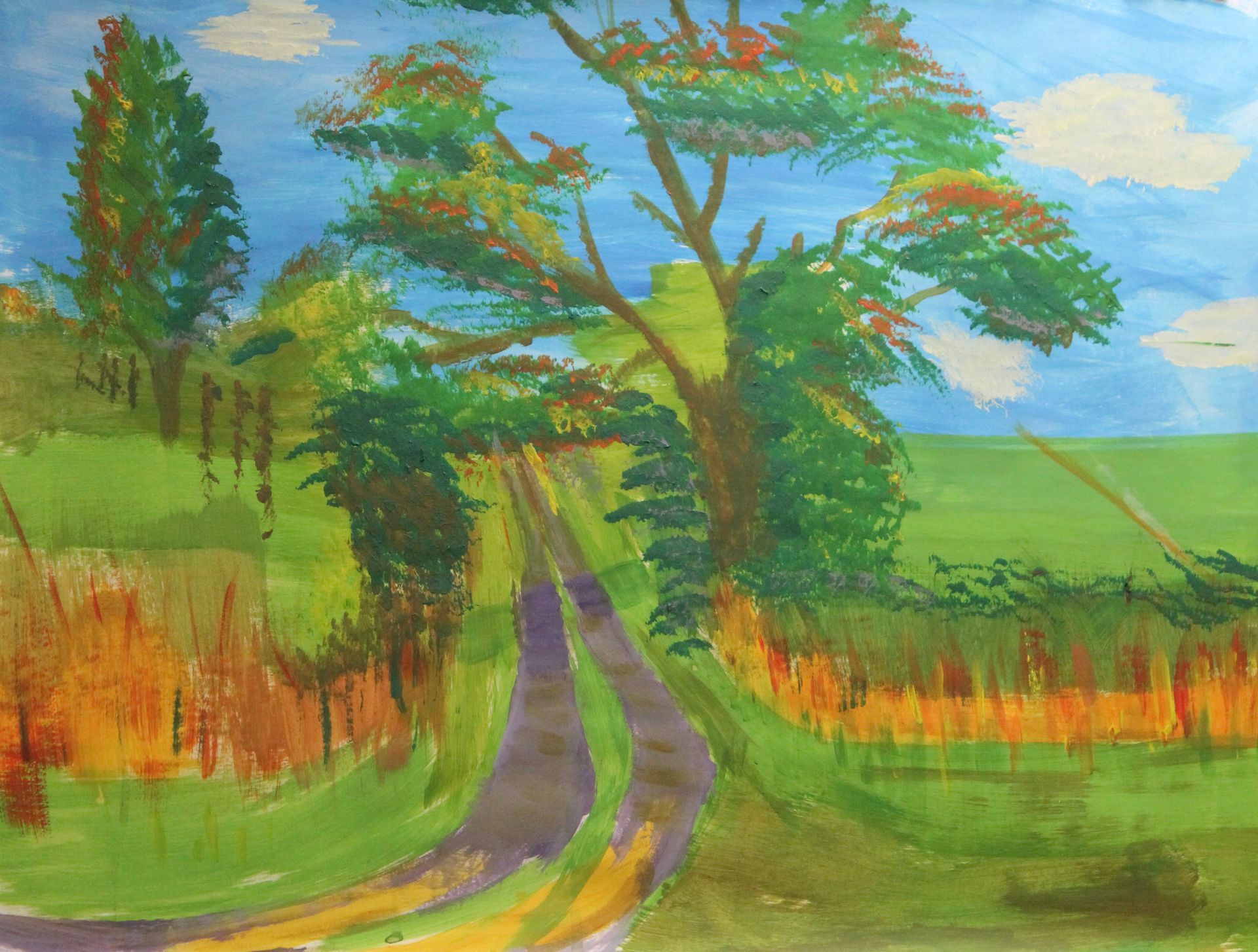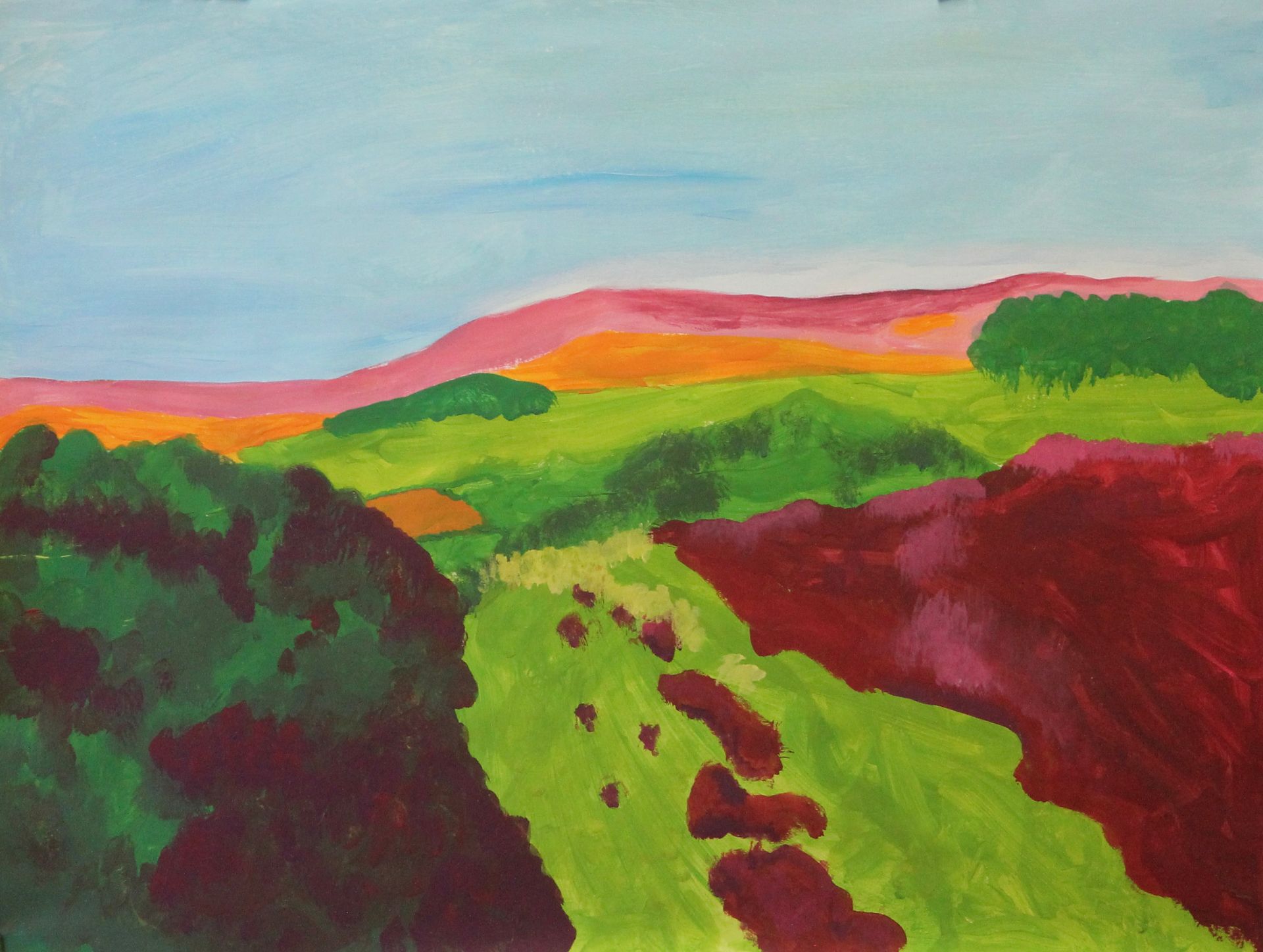 David Hockney schildert landschappen met verrassende kleuren en composities. Hij schildert met felle en natuurlijke kleuren. De deelnemers wordt gevraagd een schilderij van deze kunstenaar als inspiratiebron te gebruiken voor een eigen schilderij en bewust gebruik te maken van kleuren in het landschap.