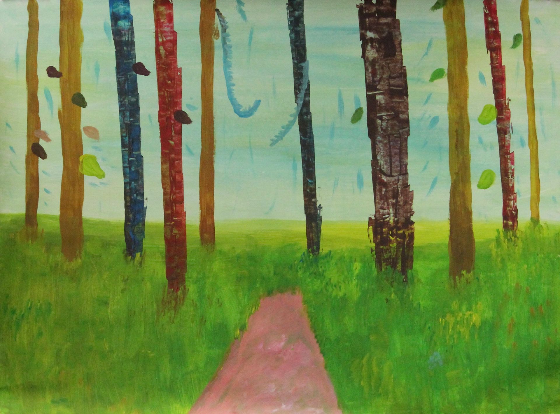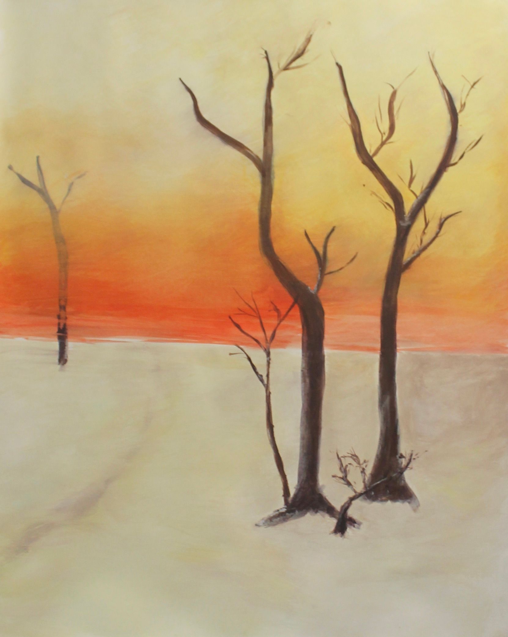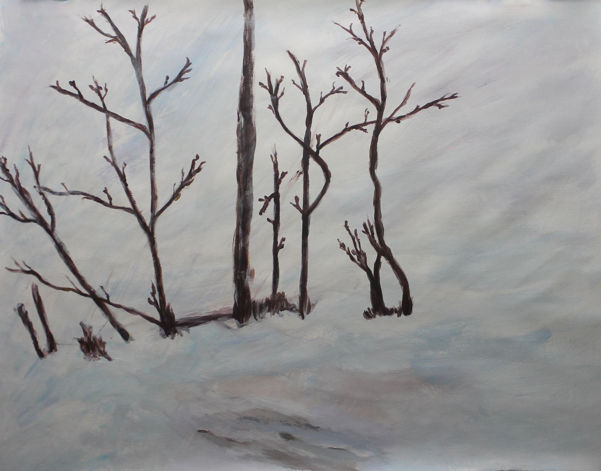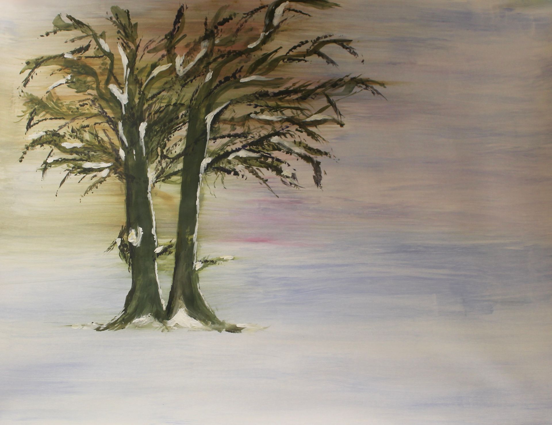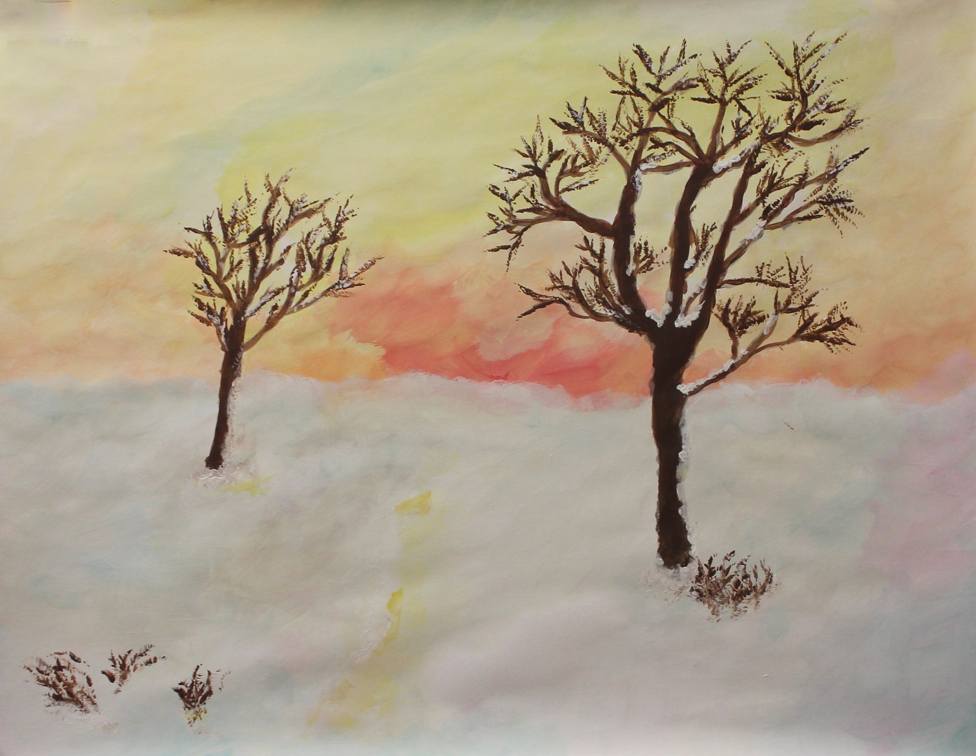 Een besneeuwd landschap is overdekt met sneeuw, en dit verschijnsel kunnen we vertalen naar een schildertechniek. De deelnemers schilderen bomen waar ze vervolgens over heen schilderen. Vervolgens schilderen ze de boom weer terug. Een mooie oefening voor het schilderen in laagjes, dat mooie effecten geeft.