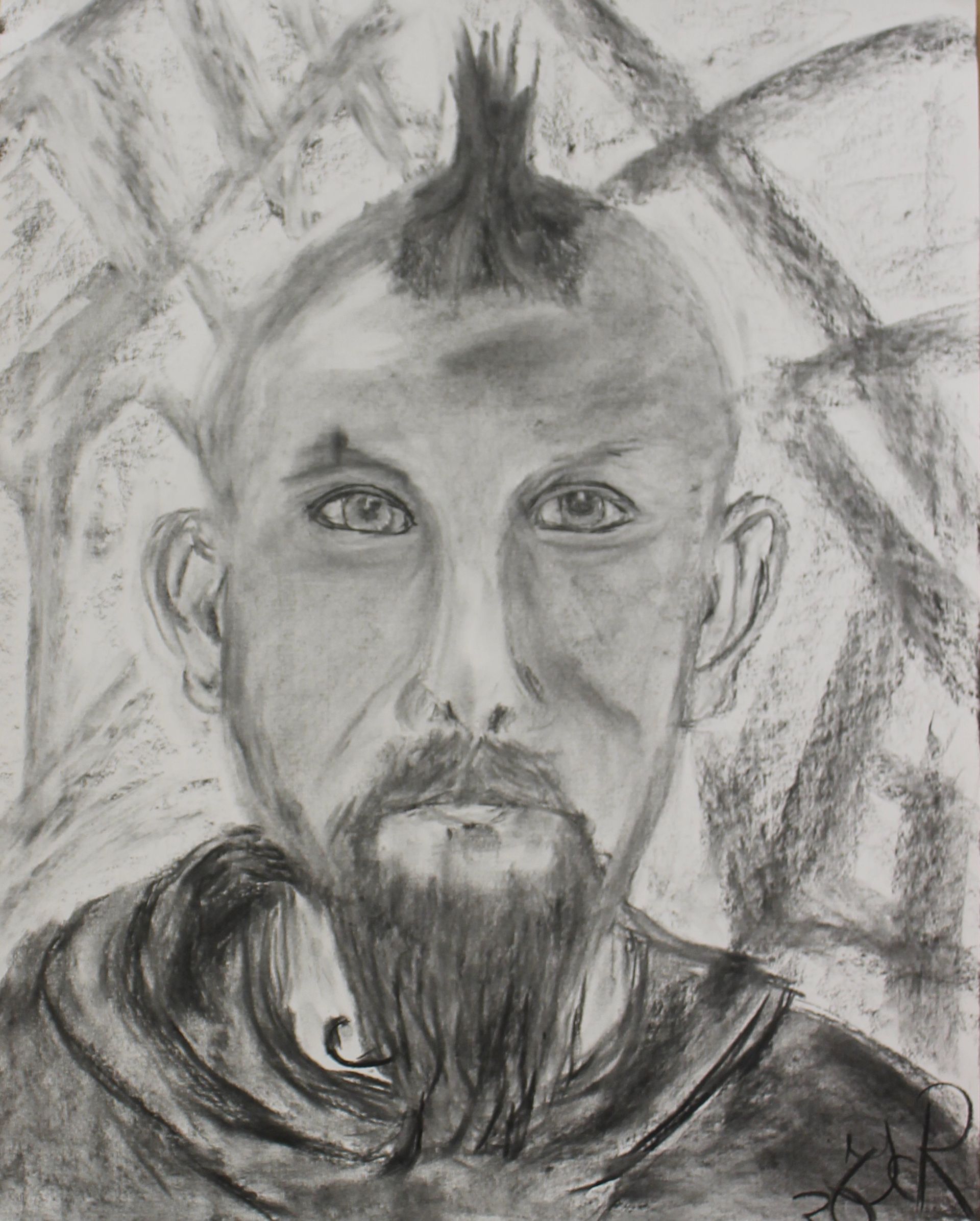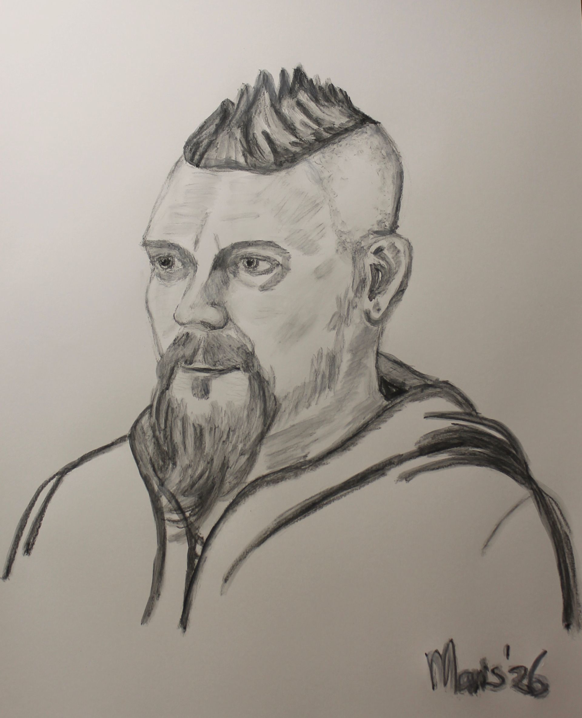 Portret schilderen, live model, met houtskool en conté