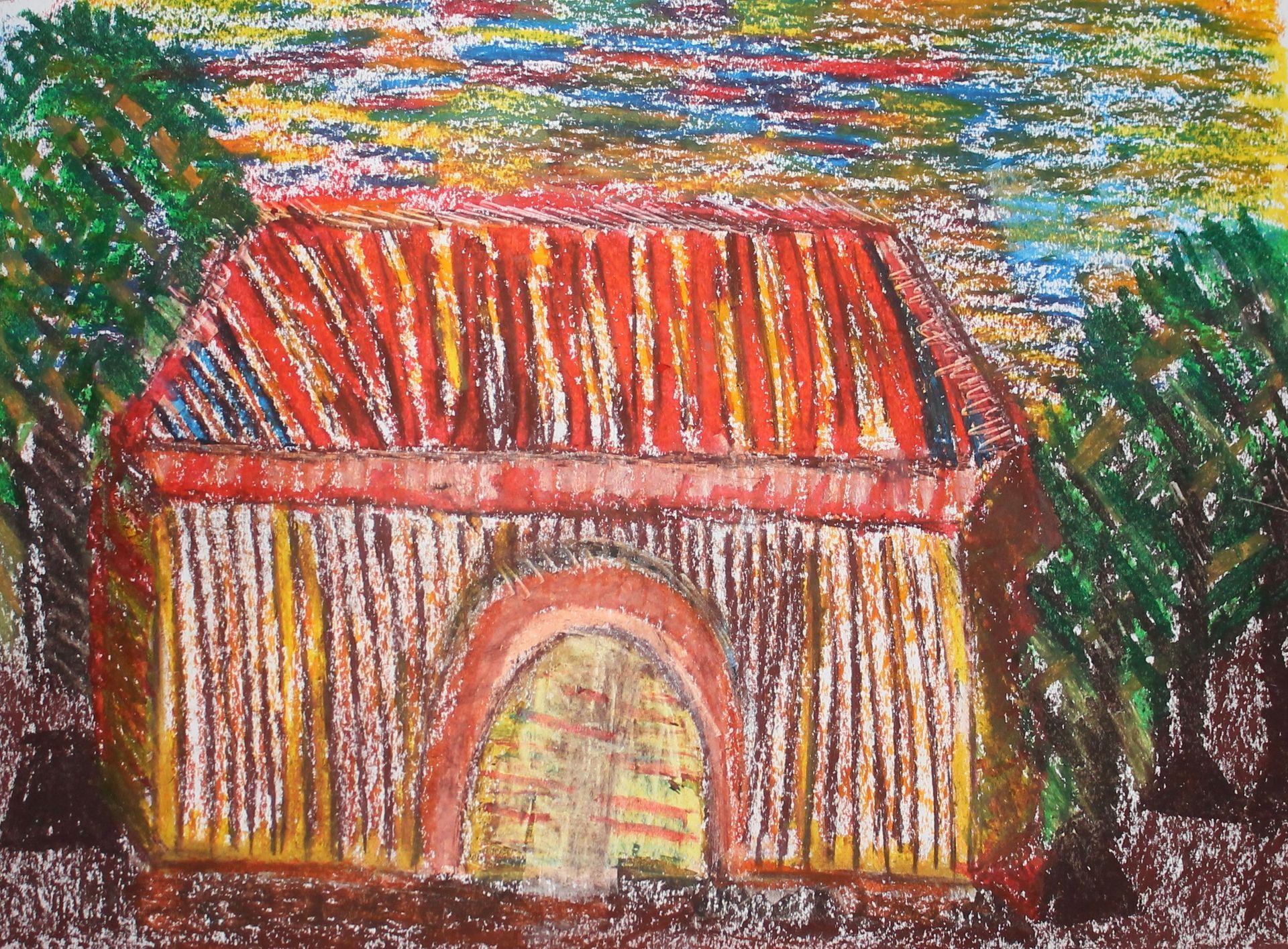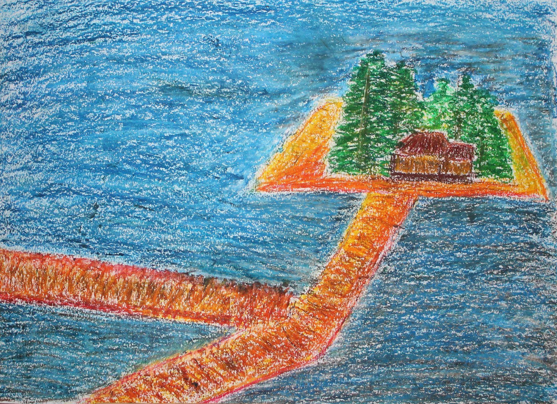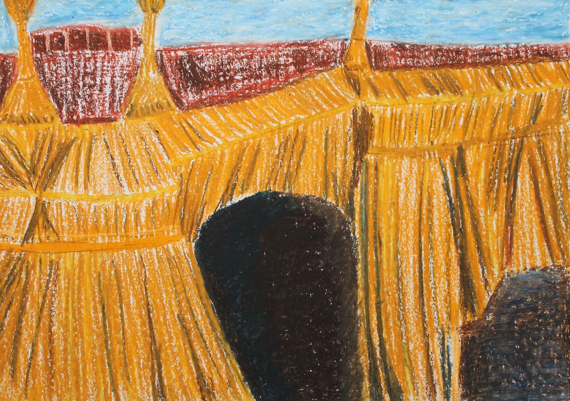 Kunstenaar Christo weergegeven in Oliepastel (schilderles 7)