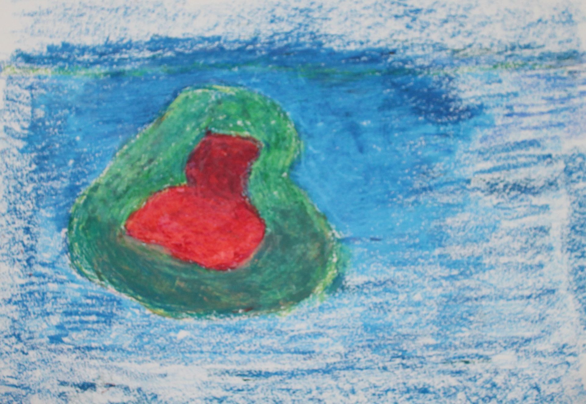 Met oliepastels, die je op verschillende manieren kunt gebruiken, maakt ze een kopie van de zee van Van Gogh.