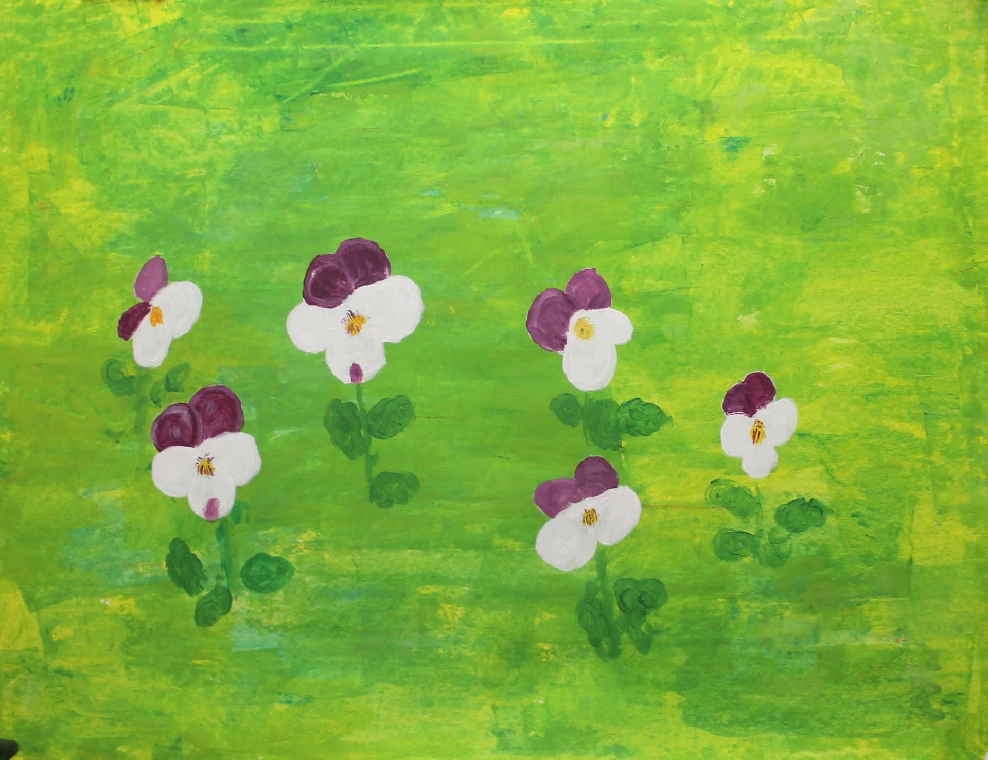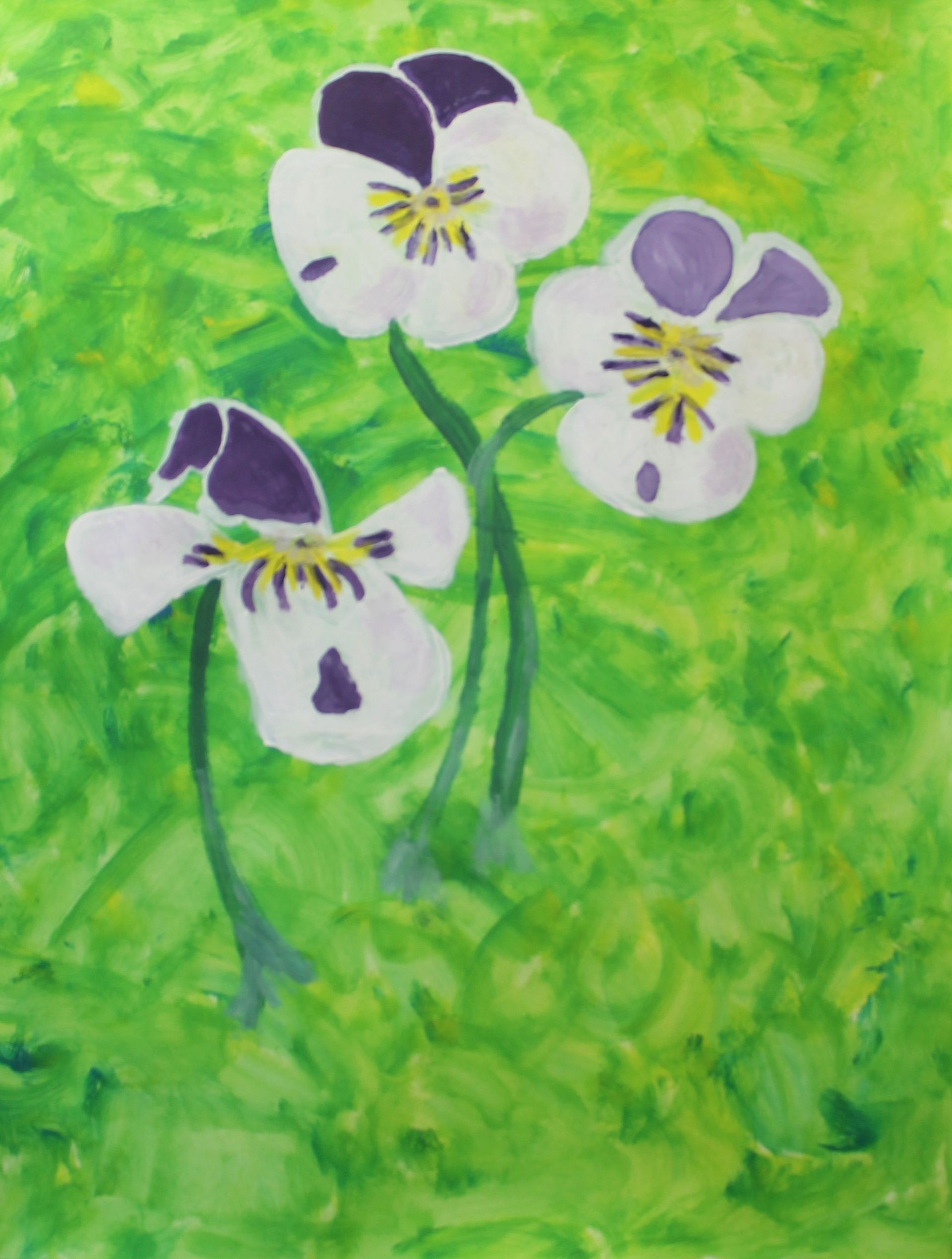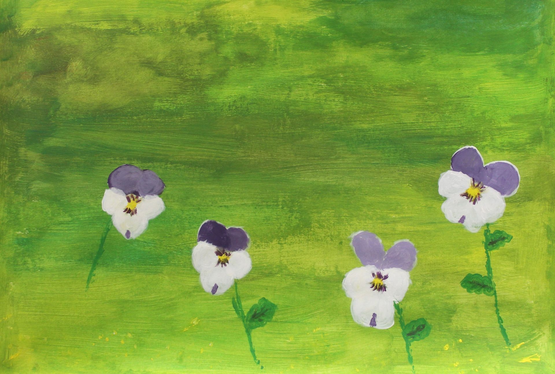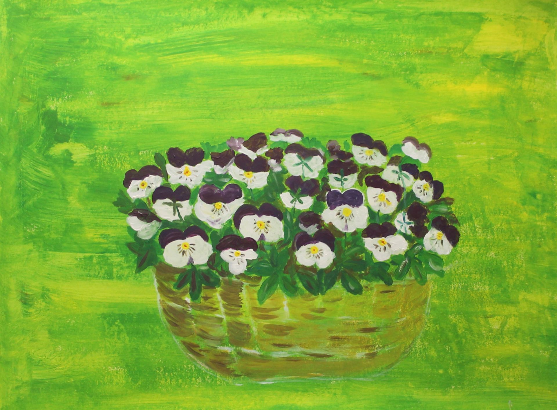 Vandaag kunnen de deelnemers beginnen met een achtergrond die ze snel kunnen opzetten met kaartje, kwast of spons. Vervolgens schilderen ze de viooltjes met gevoel voor precisie en gedetailleerd op de achtergrond.