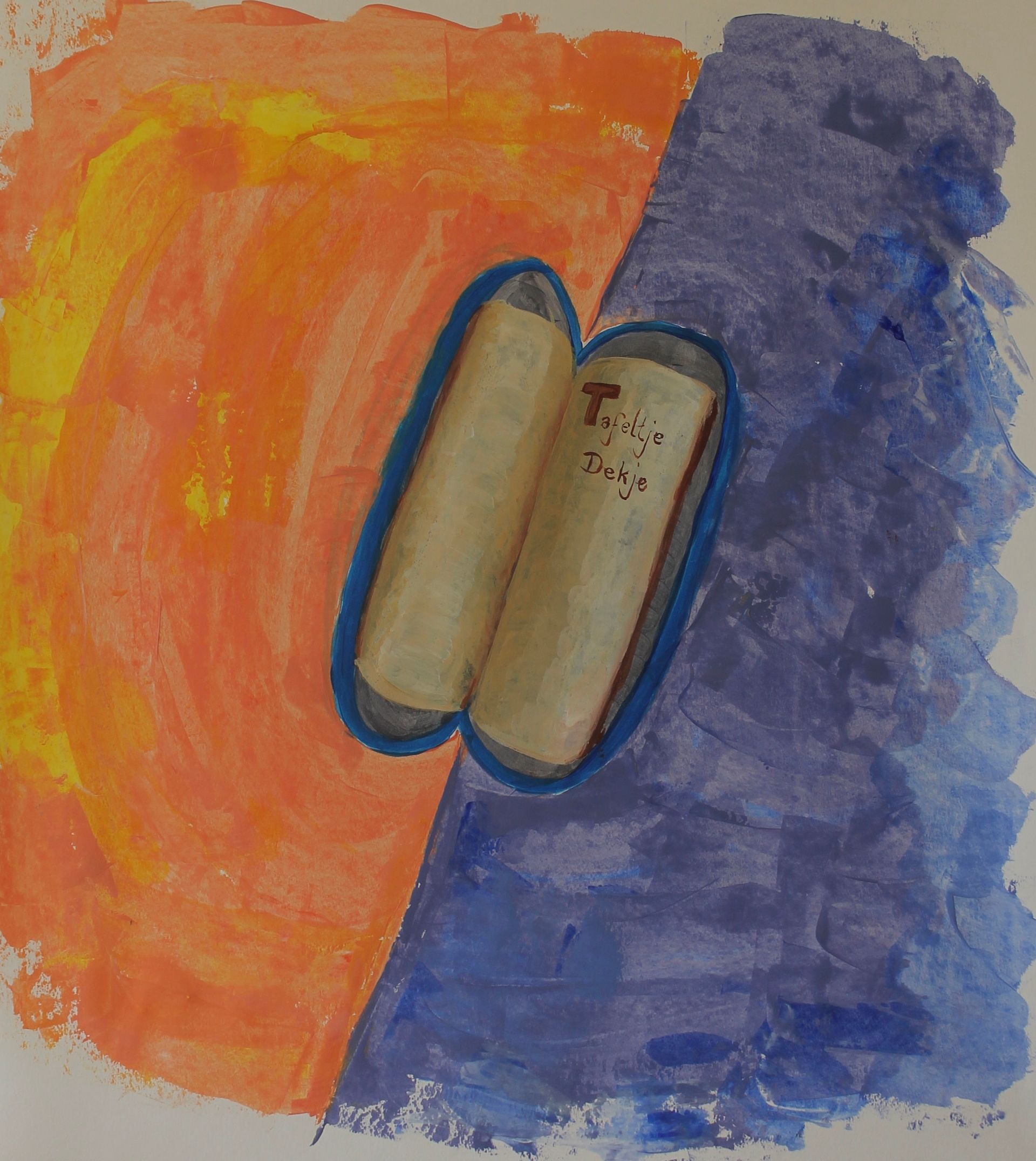 Vorige week zijn we gestart met de achtergrond en daar viel me wat op: iedereen schildert zo snel mogelijk met grote kwast, spons of kaartje aan de achtergrond om zo snel mogelijk aan het voorwerp te kunnen beginnen. De achtergrond blijft daardoor vlak, en daar wil ik met deze les verandering in brengen.
